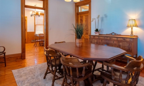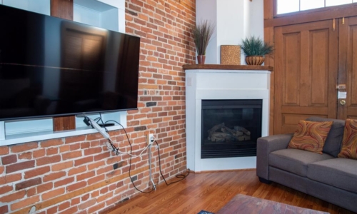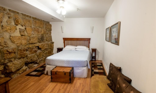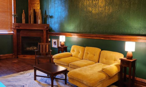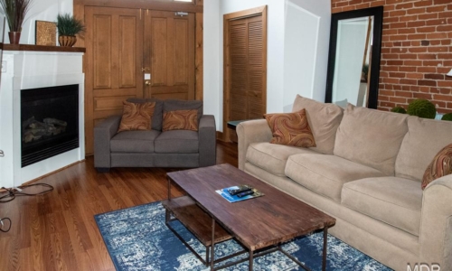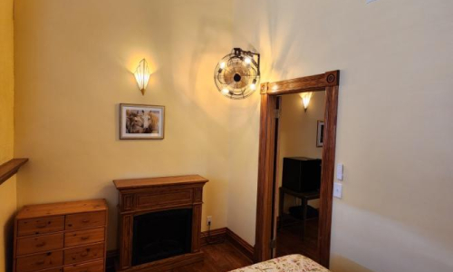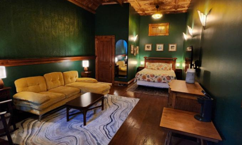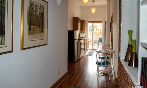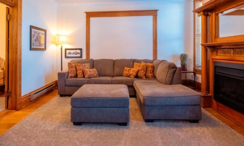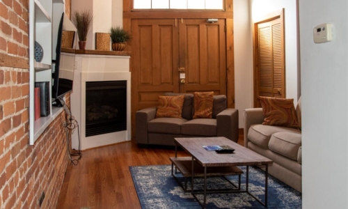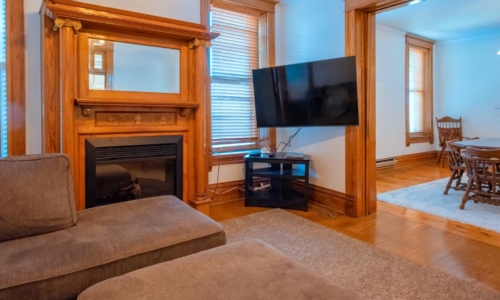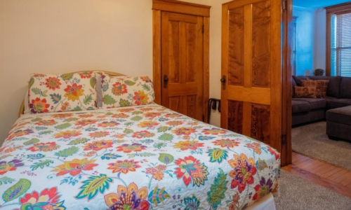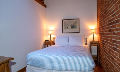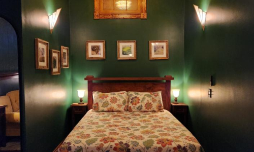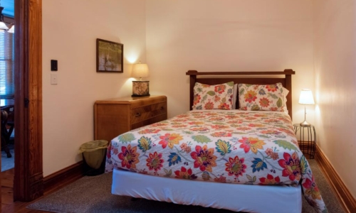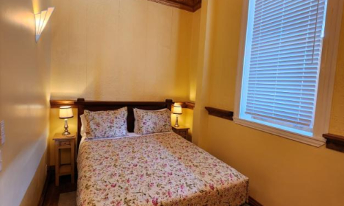 This recently renovated to cool 1920’s Art Deco main floor 1-bedroom has a queen size bed, private bath with shower, and a fireplace. You also have access to large outside deck in the rear of the building. Rates: $119 – $199 ($40 cleaning fee included in rate).