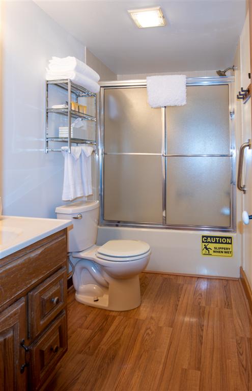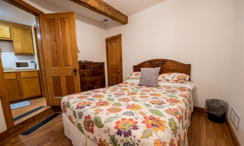 This cozy 1-bedroom located on the lower level has a sunken bedroom with a queen size bed, a 2 person whirlpool tub and private shower along with your own patio area. Rates: $119 – $199 ($40 cleaning fee included in rate).