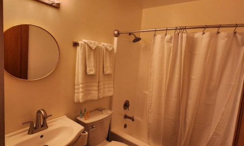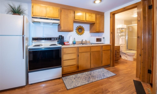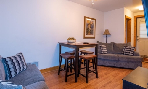 This quaint 2-bedroom on the lower level offers queen sized beds, a living room and dining area, a kitchen, full bath with shower / tub, and access to an outside patio. Rates: $175 – $250 ($40 cleaning fee included in rate).