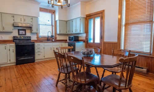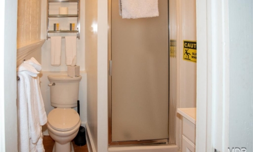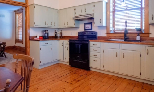 This spacious second floor 2-bedroom has a large king bedroom (with pocket doors) and a queen bedroom, a private bath with shower, a large living room, and a large bay window overlooking Main Street. Additionally you can access the main floor deck and the ground floor porch area in the rear of the building. Rates: $185 – $275 ($40 cleaning fee included in rate).